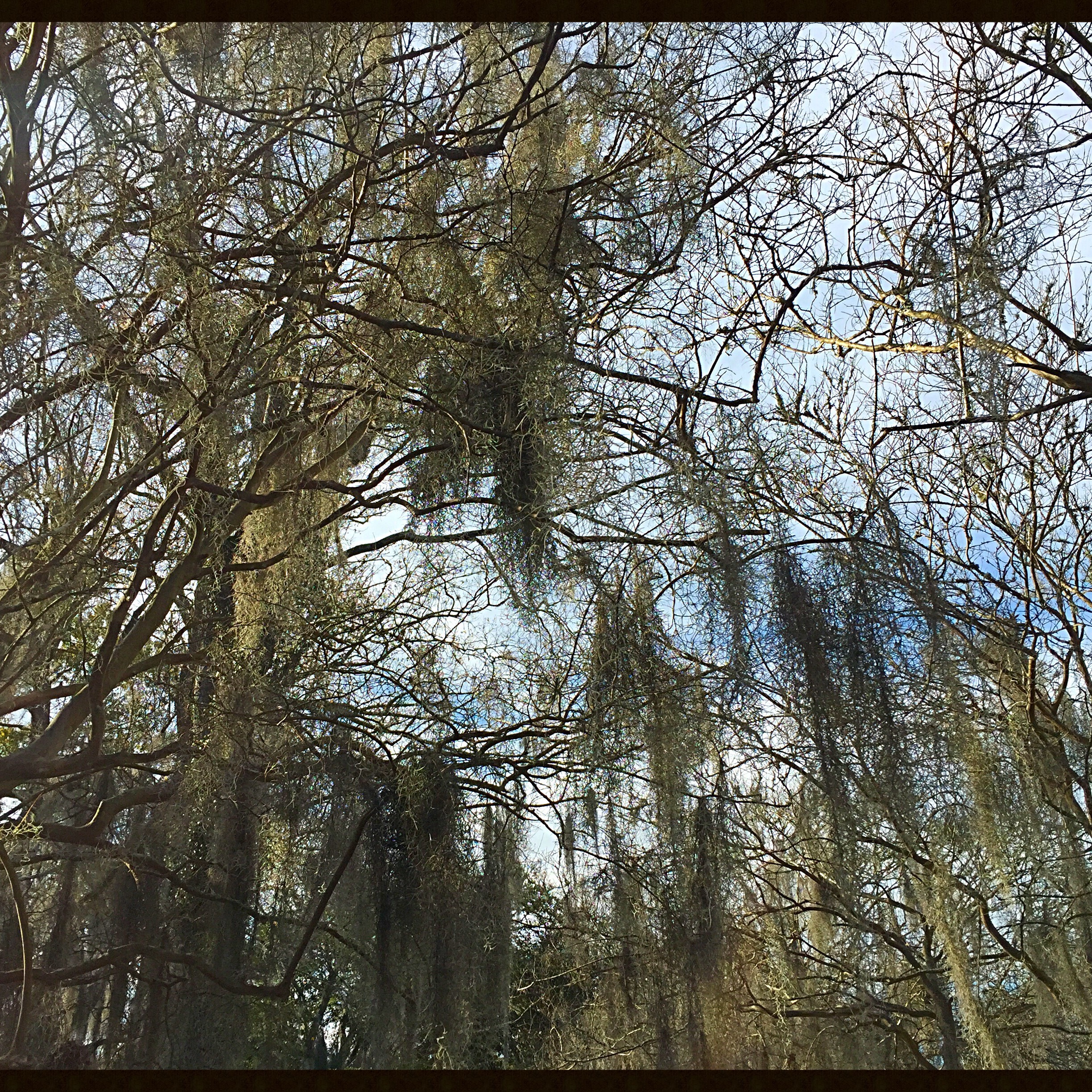 Trees in winter, enveloped in Spanish moss.